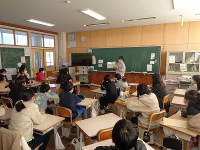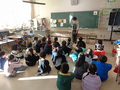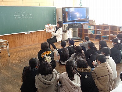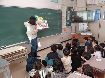いつもの読み聞かせと違うのは、児童は自分の教室で読み聞かせをしてくれる先生を待ちます。
