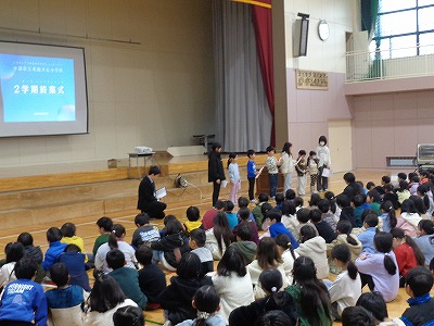 2年生と4年生の代表の児童が2学期がんばったこと、3学期がんばろうと思っていることを発表してくれました。